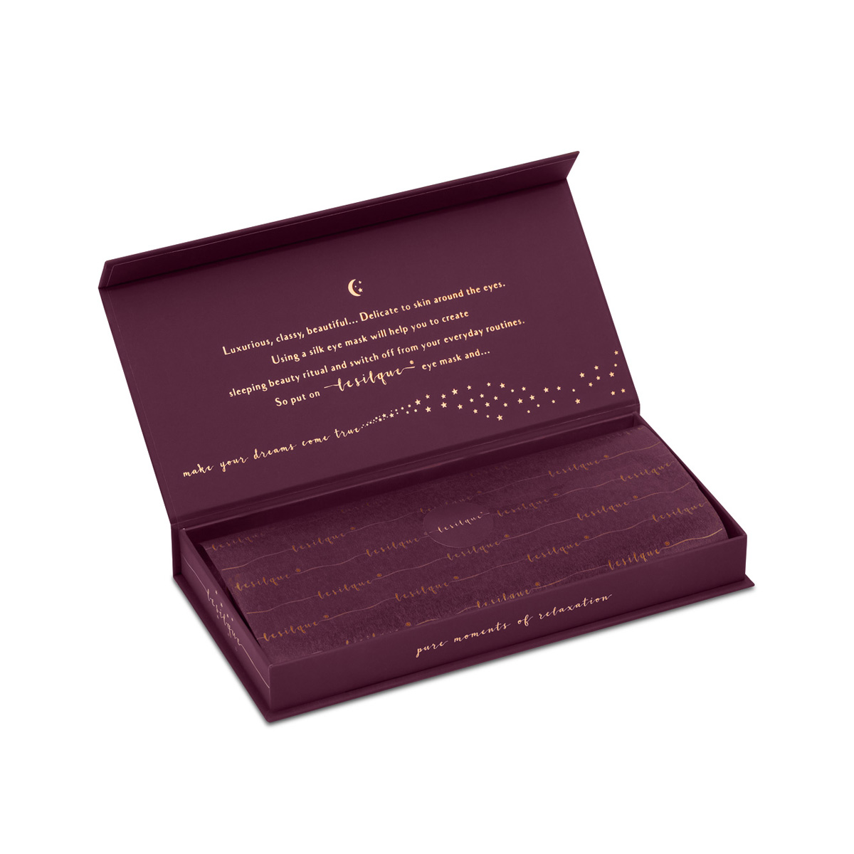 lesilque opaska na oczy do spania z jedwabiu burgundy z kryształkami w eleganckim pudełku - różowe złoto